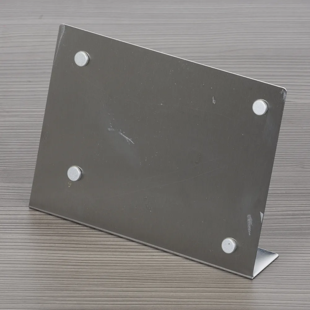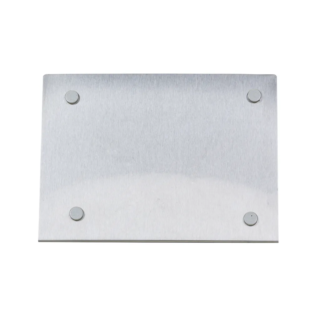 Porta retrato 10 x 15 em inox escovado, modelo chapa metálica acompanha quatro “botões” imã e película protetora anti-risco.