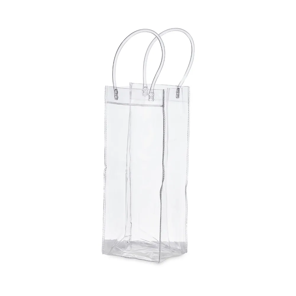 Sacola plástica para gelo com alça. Icebag serve para transportar garrafas exemplo: vinho, champagne, vodka... Basta colocar gelo e transportar seu cooler prático. OBS.: Para prolongar a vida útil do material pvc, atente-se as condições ideais de armazenamento: mantenha o material em local seco e arejado, livre da exposição ao sol e altas temperaturas. Após a utilização da icebag com gelo, certifique-se de secar completamente o material antes de guardá-lo, pois o armazenamento deste em estado úmido poderá comprometer a sua vida útil.