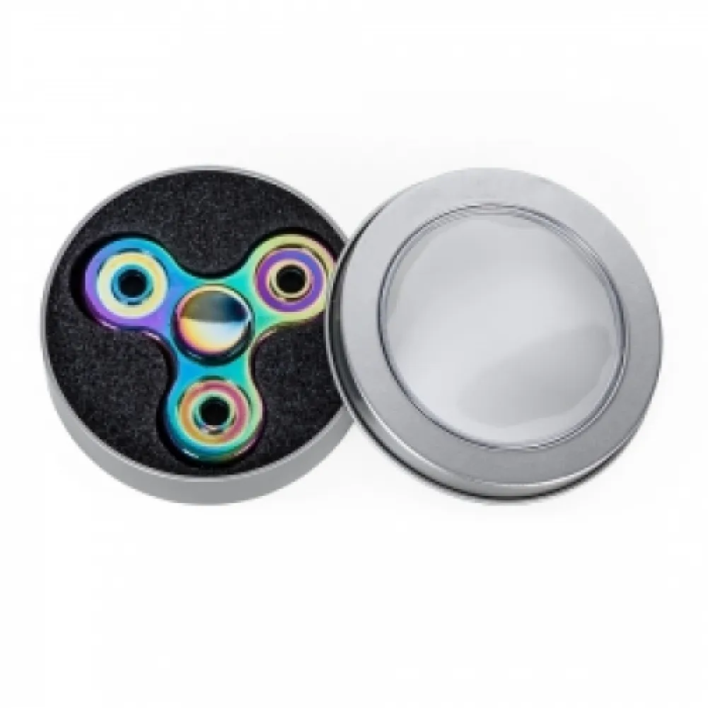 Spinner antiestresse camaleão, material metálico. Acompanha estojo metal com visor na tampa, parte interna revestida de espuma.