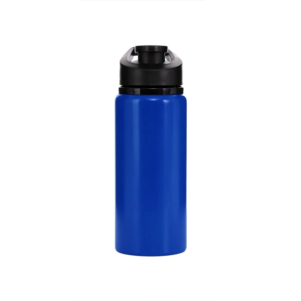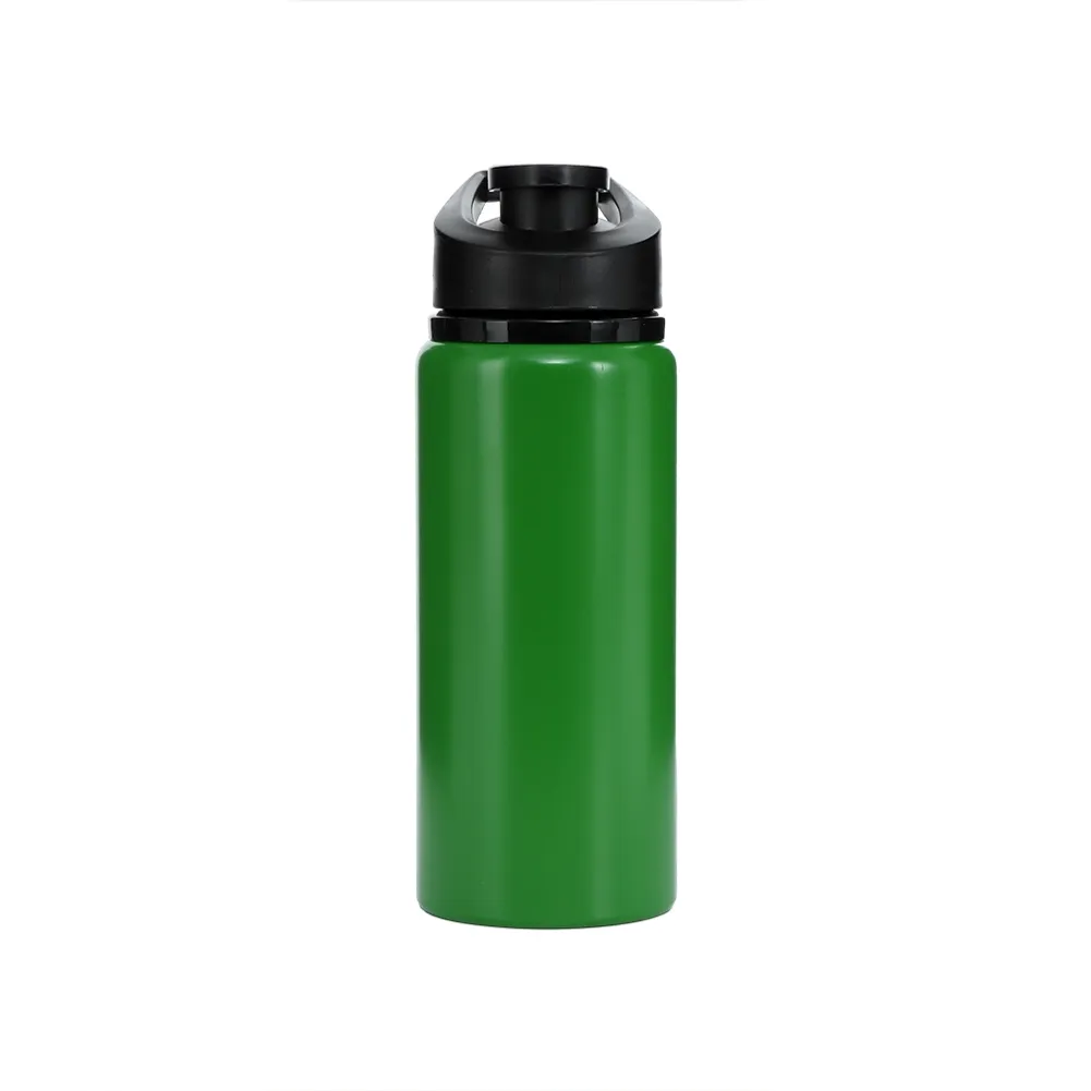 Squeeze de alumínio com capacidade de 600ml com acabamento leitoso fosco, contém tampa plástica rosqueável, alça e tampa protetora para o bocal.
