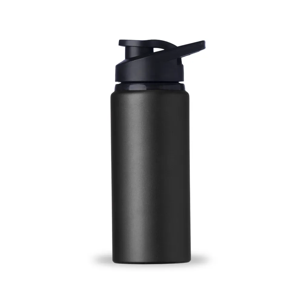 Squeeze alumínio de 600ml com pintura fosca. Squeeze com tampa plástica rosqueável, alça e tampa protetora para o bocal.