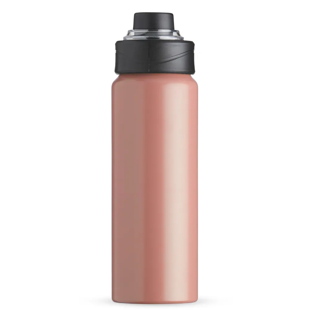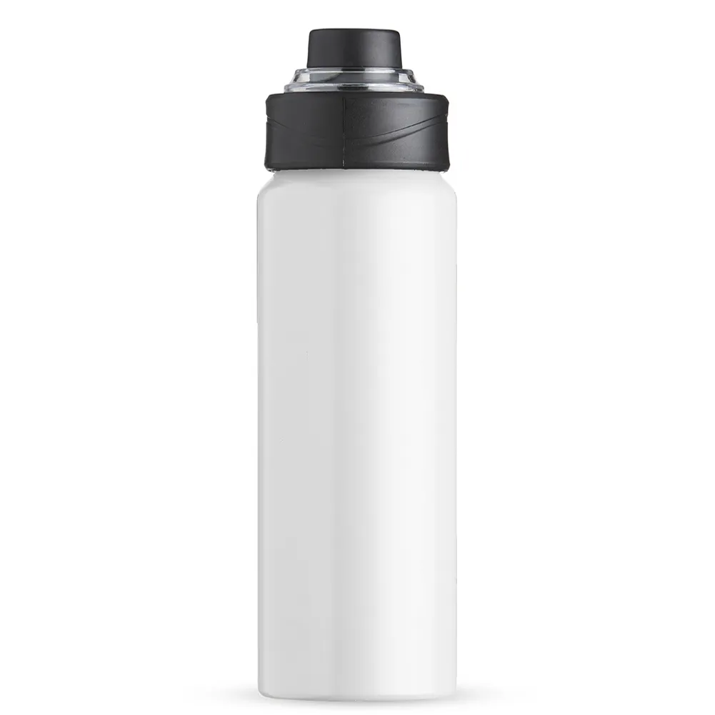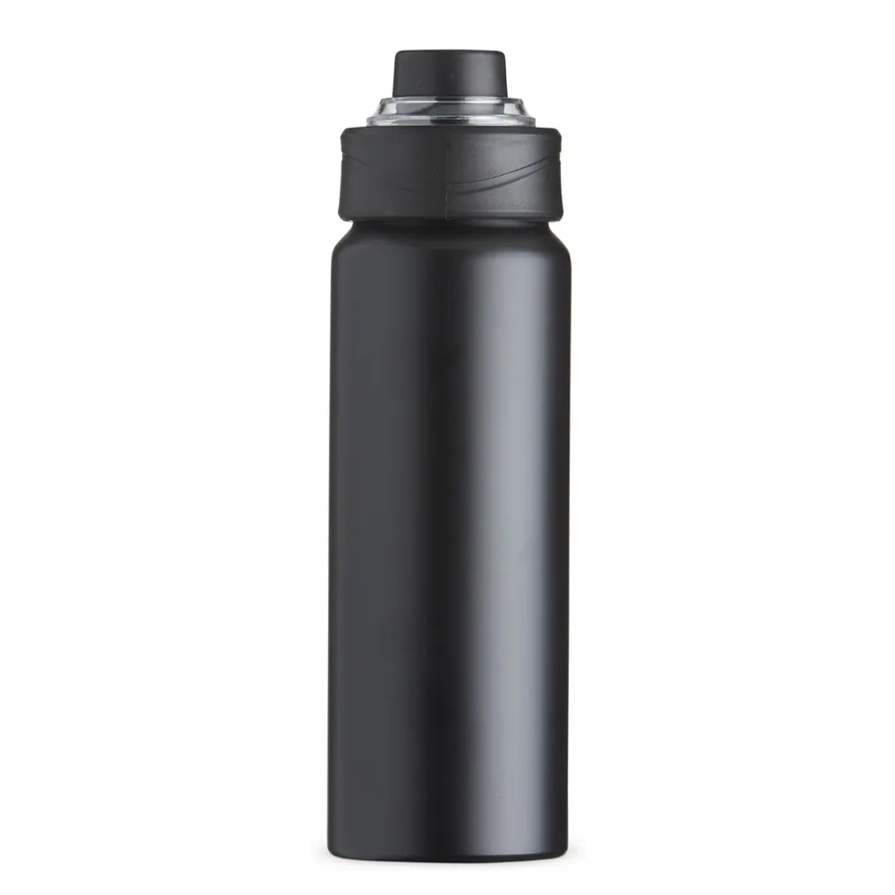 Squeeze Alumínio 800ml, possui tampa rosqueável com proteção para bocal plástica e alças de nylon e plástica.