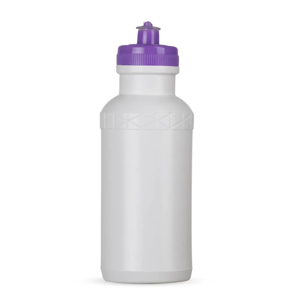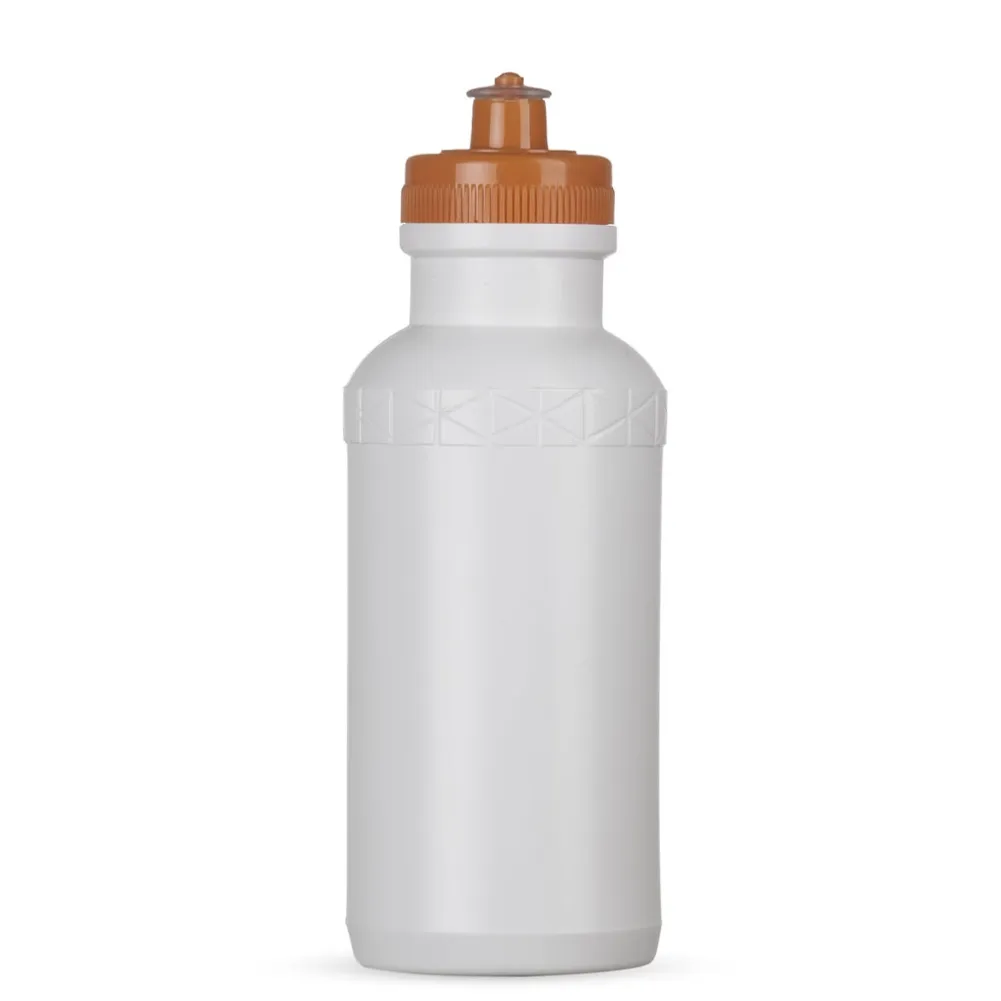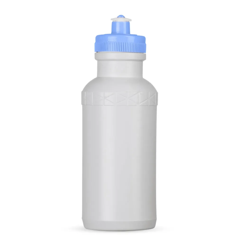 Squeeze 500ml plástico livre de BPA, possui corpo branco com tampa colorida e detalhe em relevo na parte superior. Tampa rosqueável com bico de silicone. OBS.: PEDIDO MÍNIMO 50 PEÇAS!