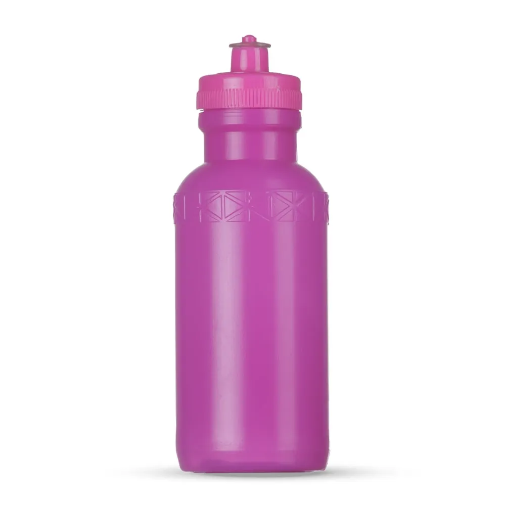 Squeeze 500ml plástico livre de BPA, possui detalhe em relevo na parte superior e tampa rosqueável com bico de silicone. OBS.: PEDIDO MÍNIMO 50 PEÇAS!