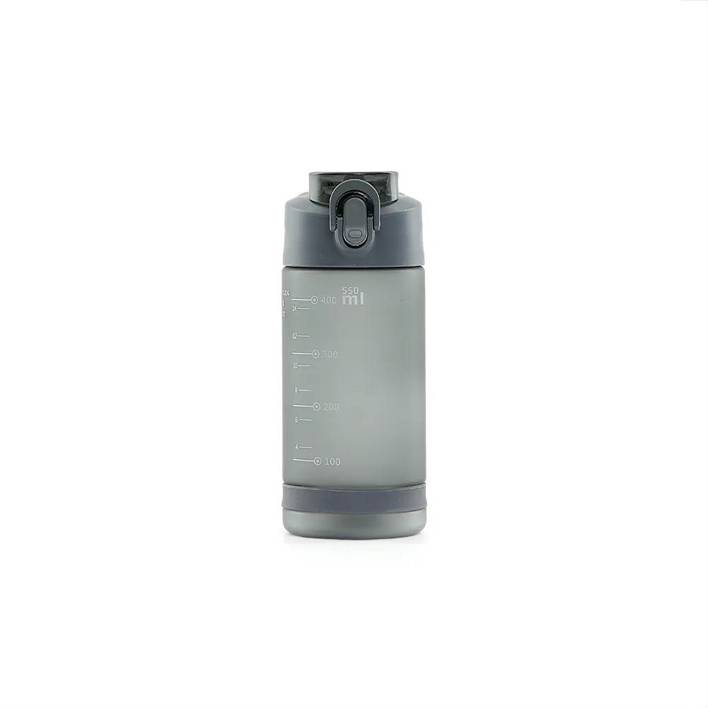 Squeeze plástico com capacidade de 550ml. Possui tampa rosqueável com bico de canudo, tampa protetora e botão de acionamento. Squeeze com acabamento fosco, detalhe emborrachado na parte inferior e alça para transporte.
