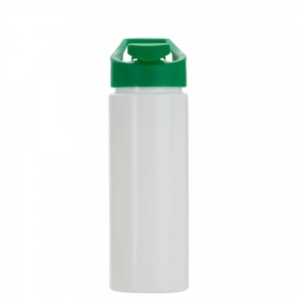 Squeeze de polietileno 550ml com tampa plástica rosqueável, contém alça e tampa protetora para o bocal.