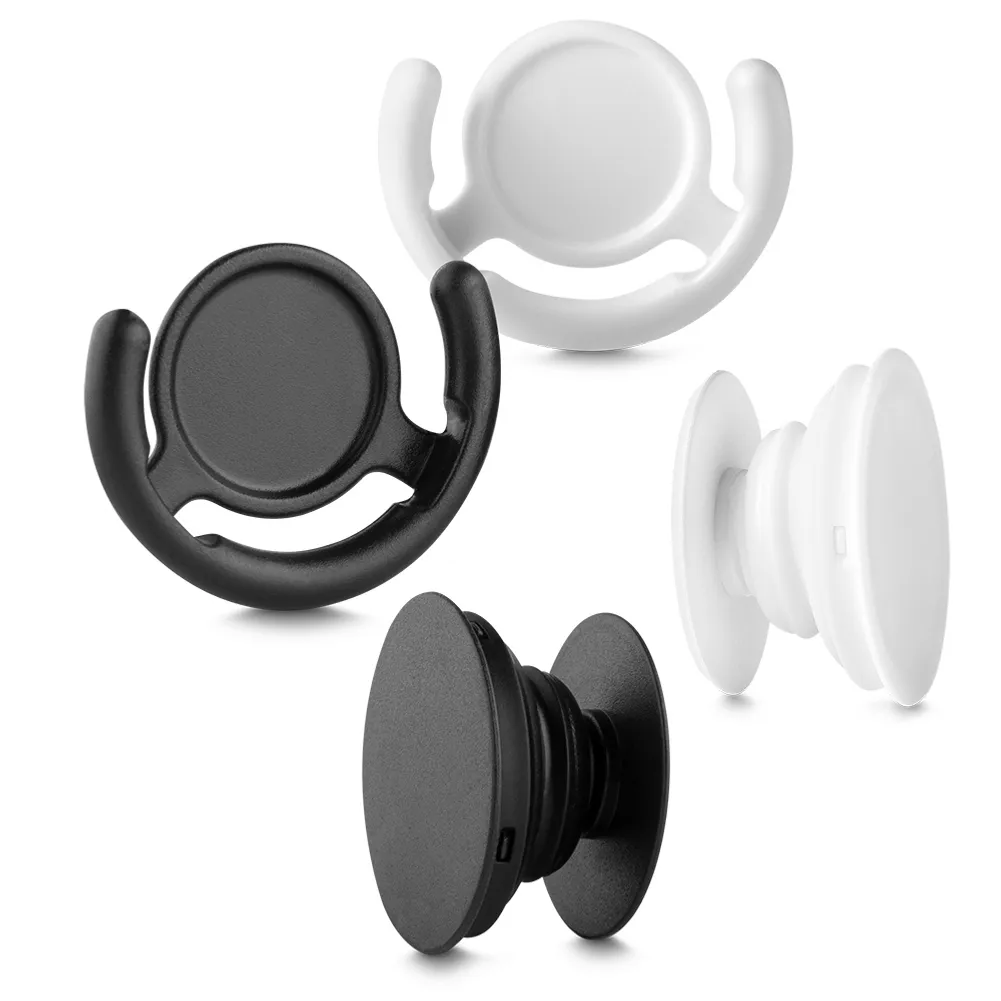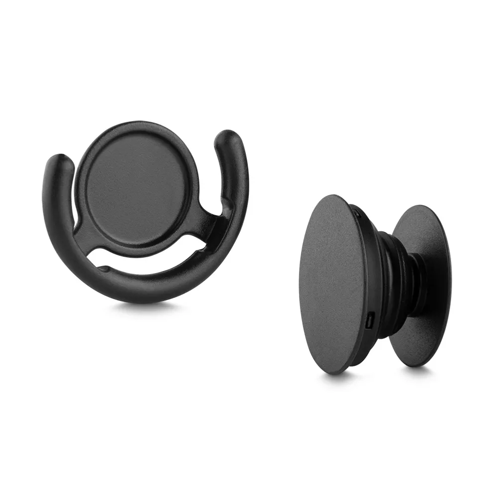 Suporte tipo Pop Socket para telefone celular, facilita a digitação, usado como apoio para o celular, fixação via adesivo 3M. Acompanha suporte de encaixe veicular.