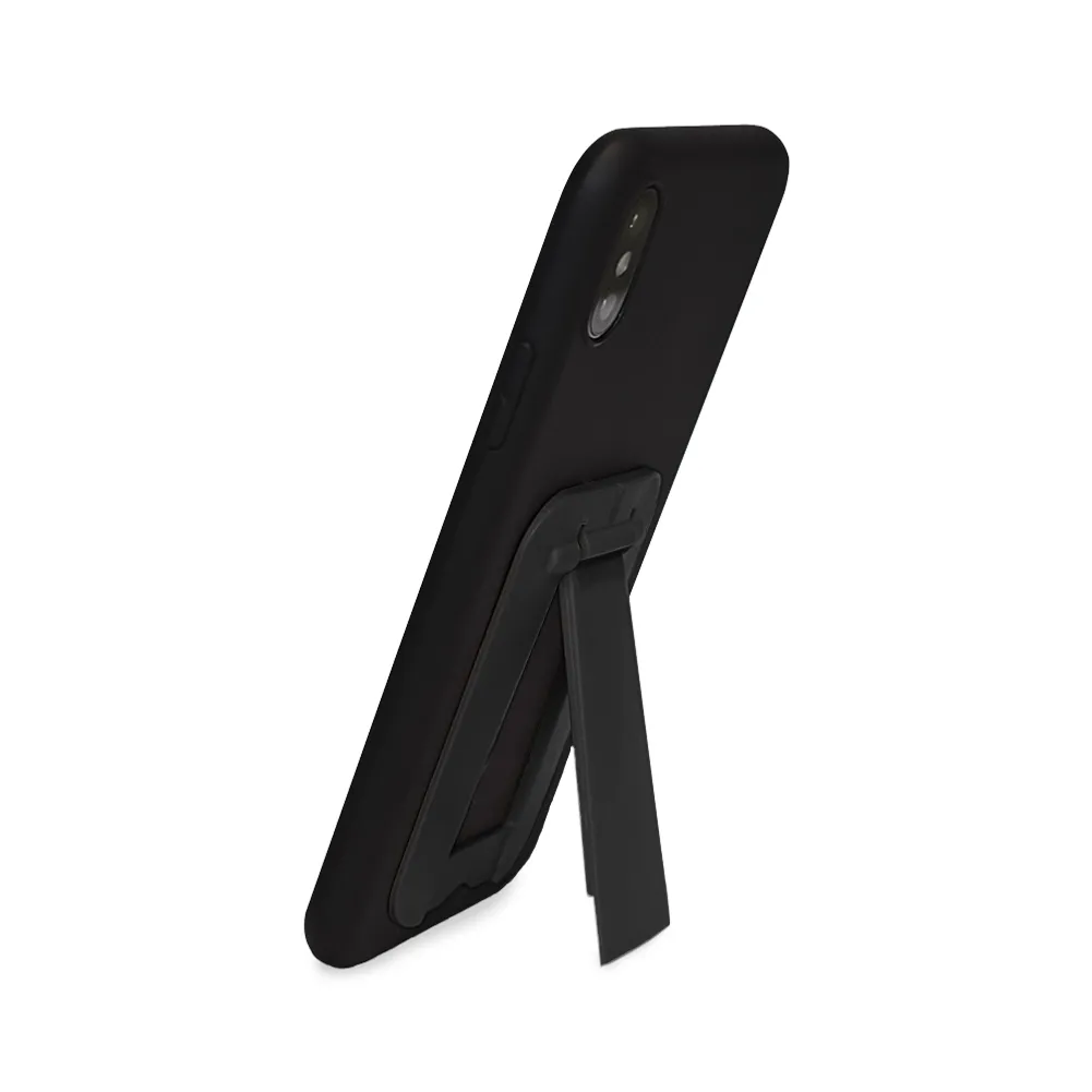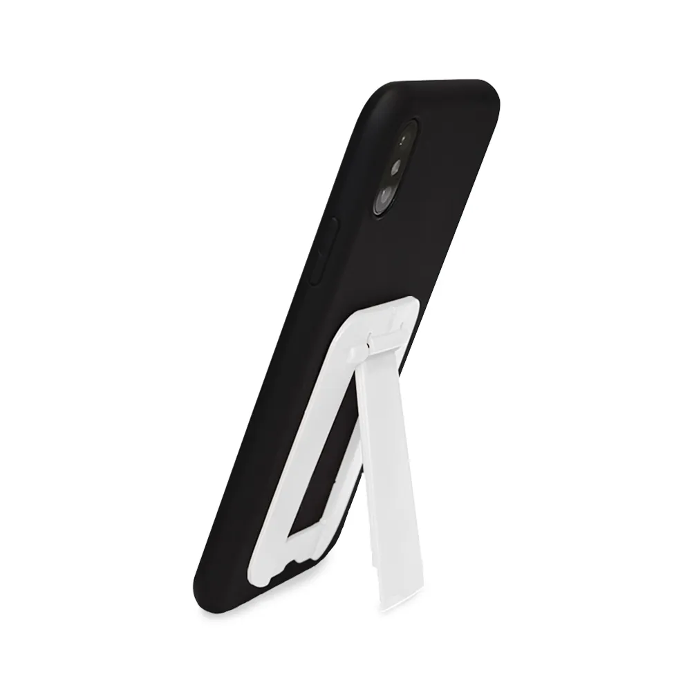 Suporte plástico para celular, possui no verso fita dupla face para fixação.