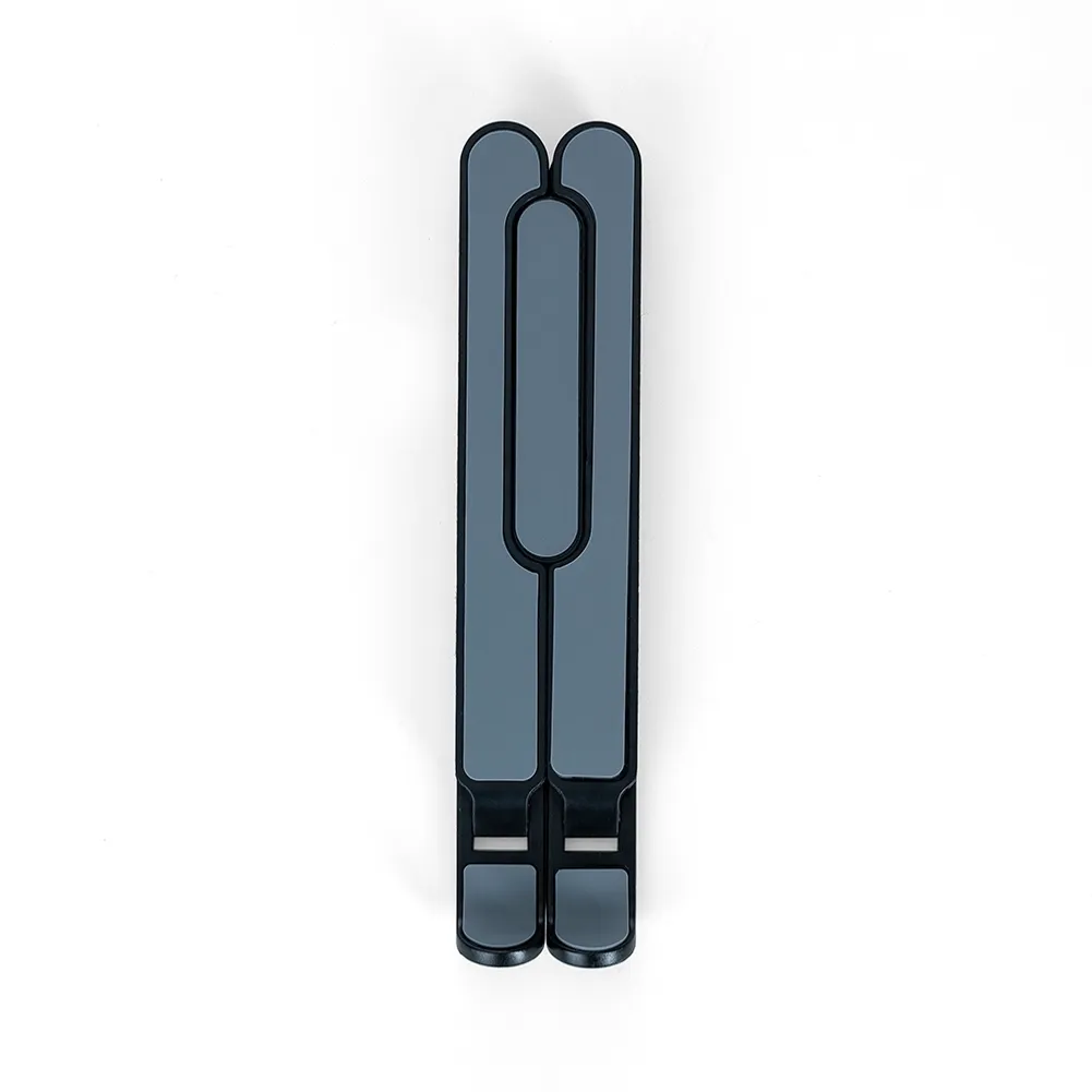 Suporte retrátil para notebook com ângulos reguláveis. Com “esteiras” de silicone antideslizantes, o suporte contém seis posições para regulagem que se adaptam conforme a necessidade do usuário, promovendo um maior conforto e aperfeiçoando a ergonomia durante sua utilização. Sua estrutura de corte aberto torna a circulação de ar excepcional, acelerando o resfriamento do notebook e proporcionando uma dissipação de calor ideal ao eletrônico.
