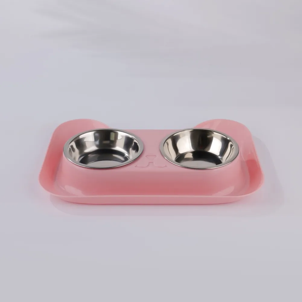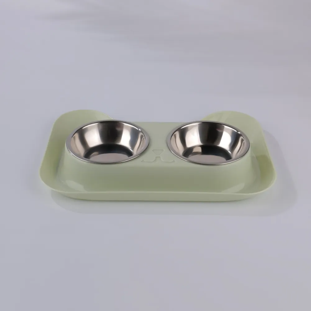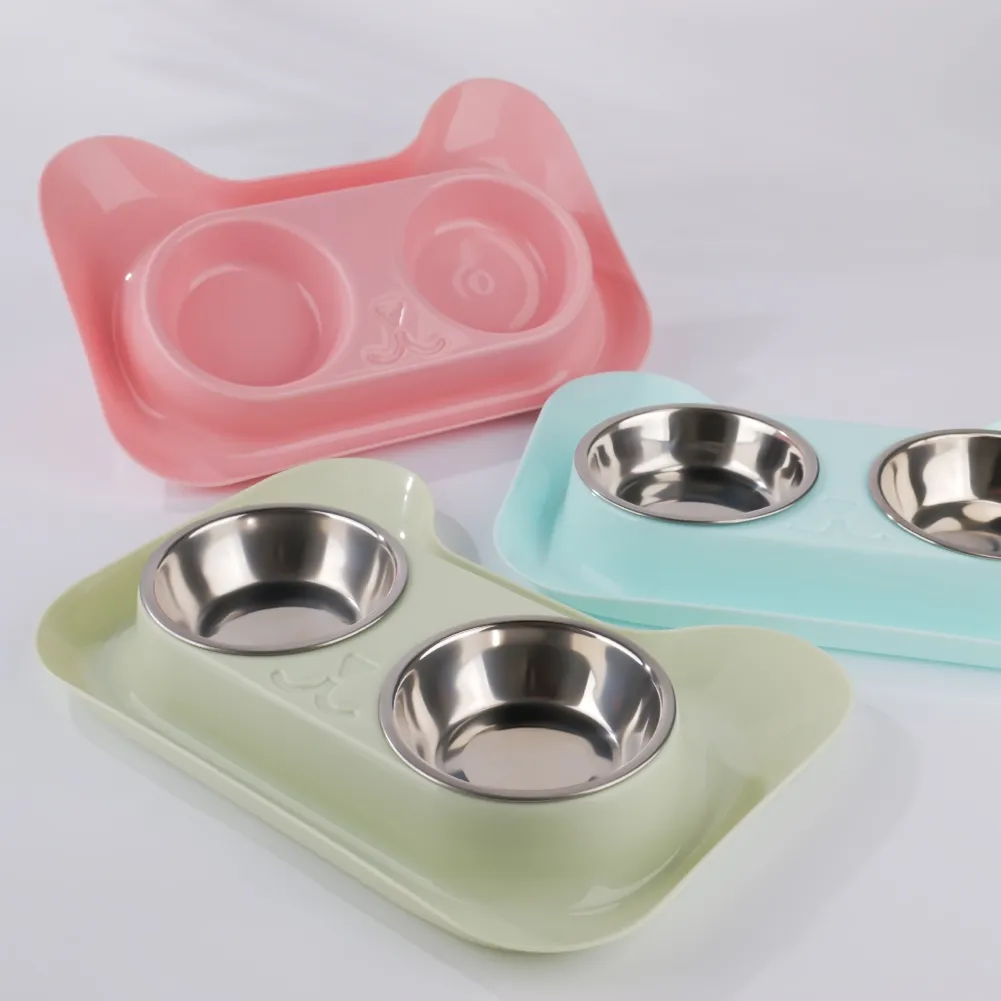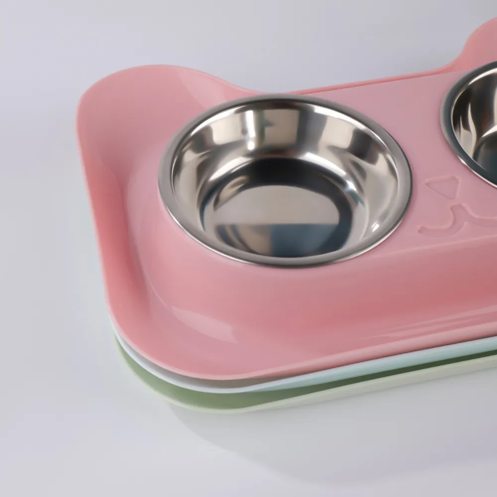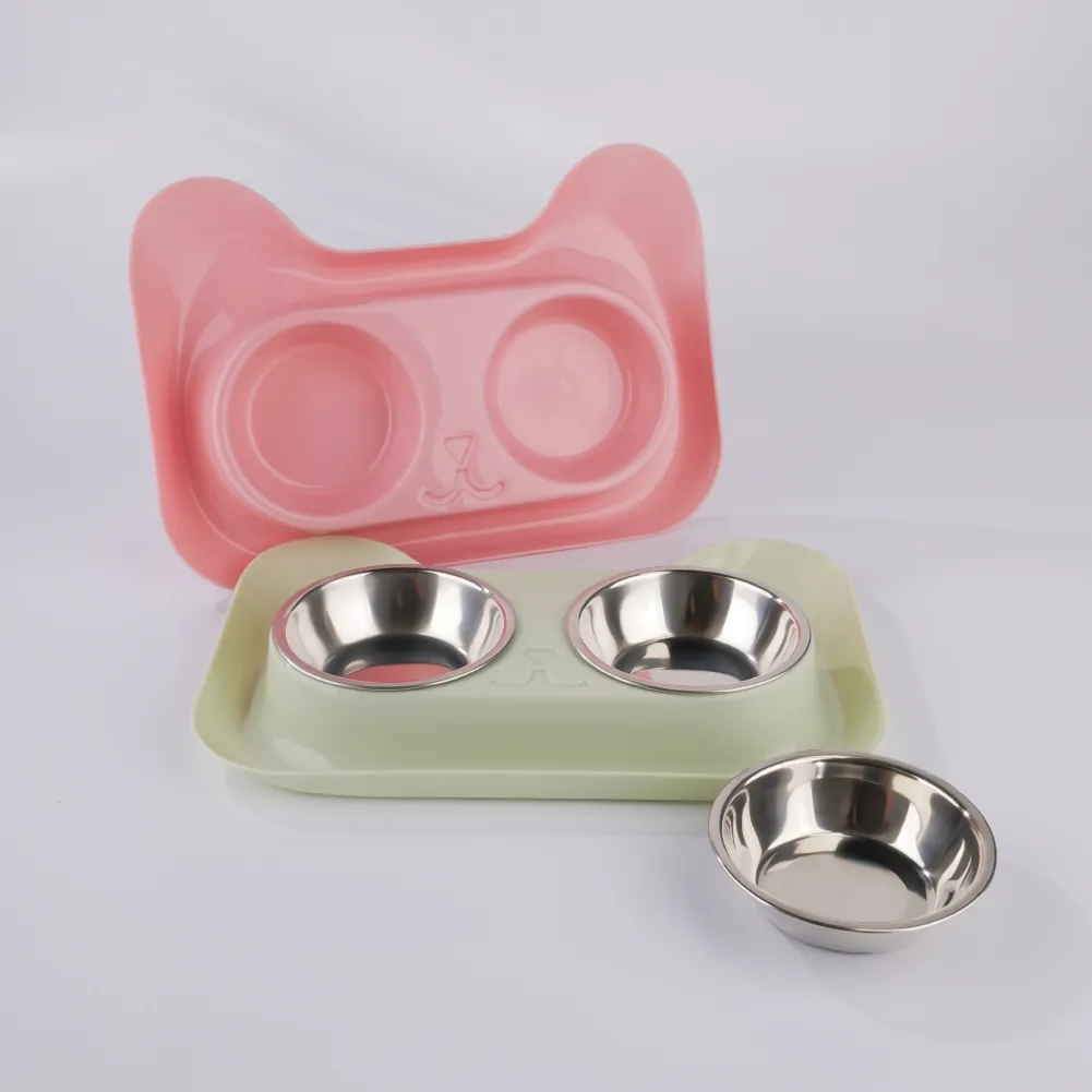 Conjunto de tigela dupla de aço inoxidável para animais de estimação.