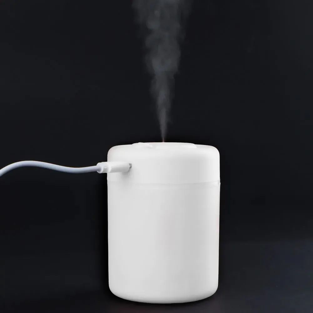 Umidificador de ar com difusor de óleo essencial via USB. Com capacidade 180ml, LED Lâmpada noturna para uso em carro, escritório ou em casa. Acompanha cabo USB.