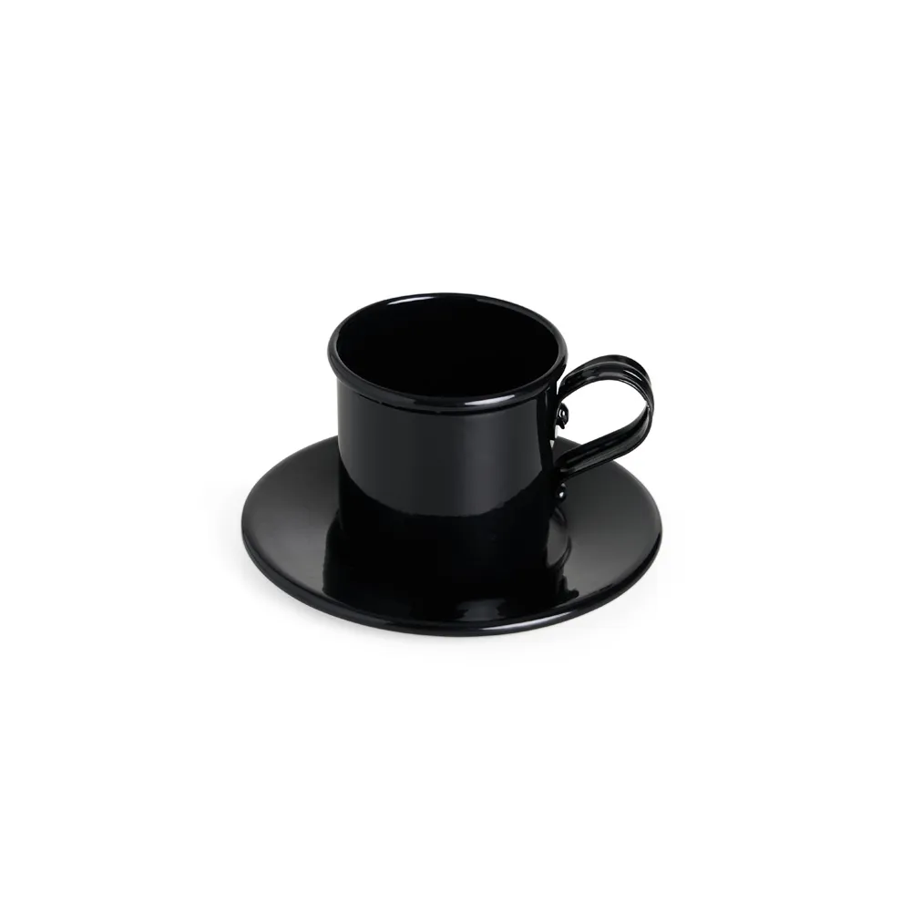 Xicara 100ml com pires, feitos em alumínio.